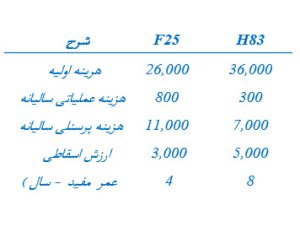 دو نوع پرس T4  و T5 به صورت دو طرح جداگانه  مطابق با اطلاعات های روبرو مورد بررسی اقتصادی قرار می گیرند . اگر درآمد سالیانه هر ماشین ۳۵.۰۰۰ واحد پولی است .  با حداقل نرخ جذب کننده ۱۸٪ خرید کدام یک از پرس ها  با استفاده از تکنیک منافع به مخارج اقتصادی تر است ؟